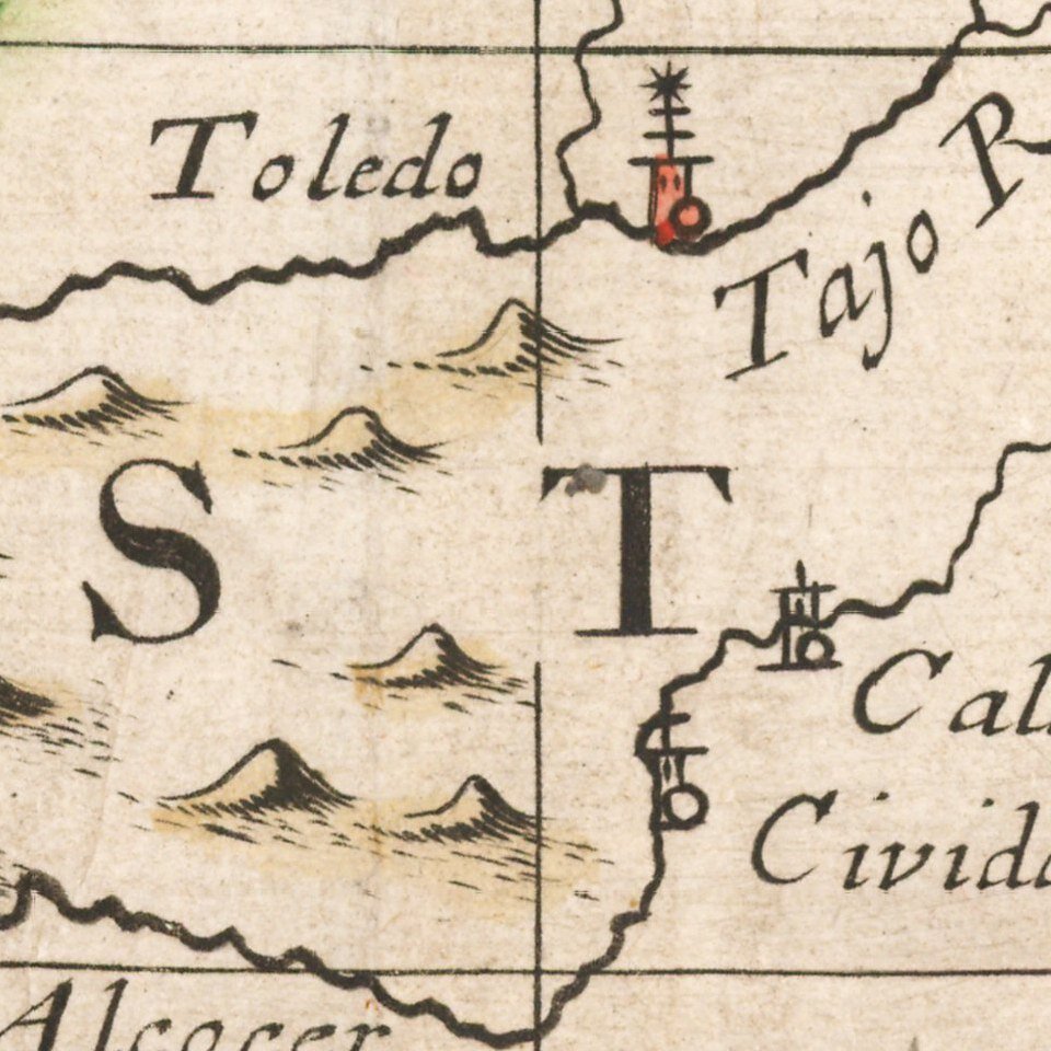 Decorative map of the Iberian Peninsula, colored by regions.