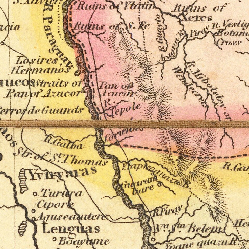 The map includes an evocative cartouche, showing a European male soldier subjugating a shackled indigenous female. The image is ironic, given that the time period in which the map is published in the midst of the first decade of Revolution throughout South America.