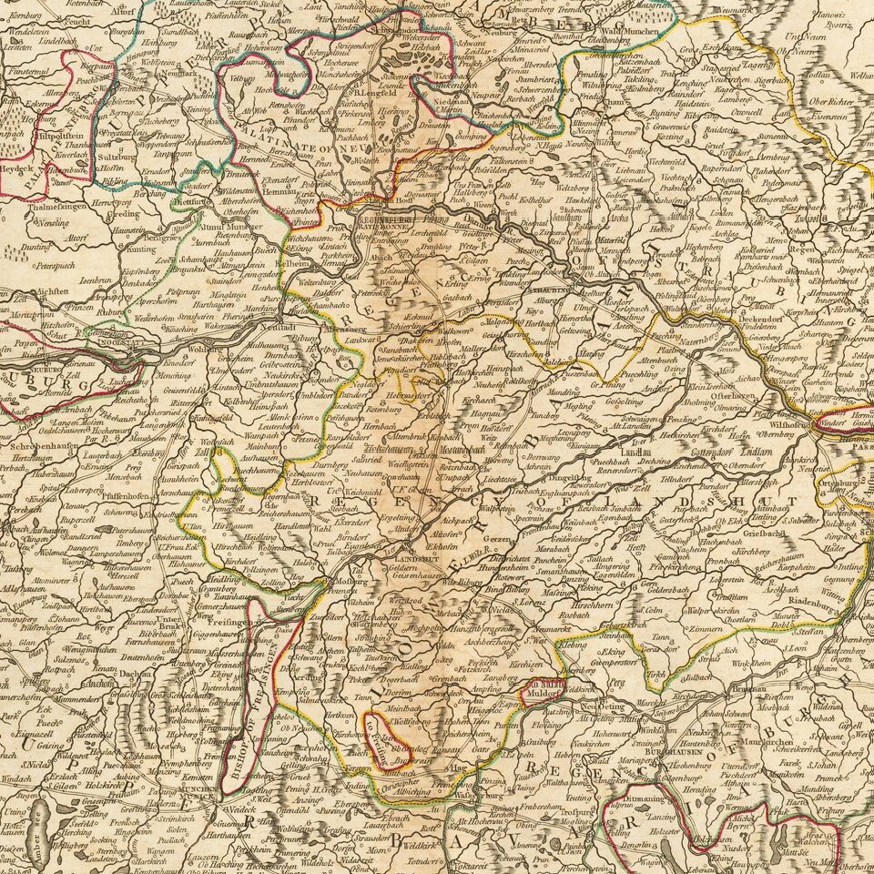 Detailed map of Bavaria, in present-day Germany, by the esteemed English mapmaking firm of Laurie & Whittle.