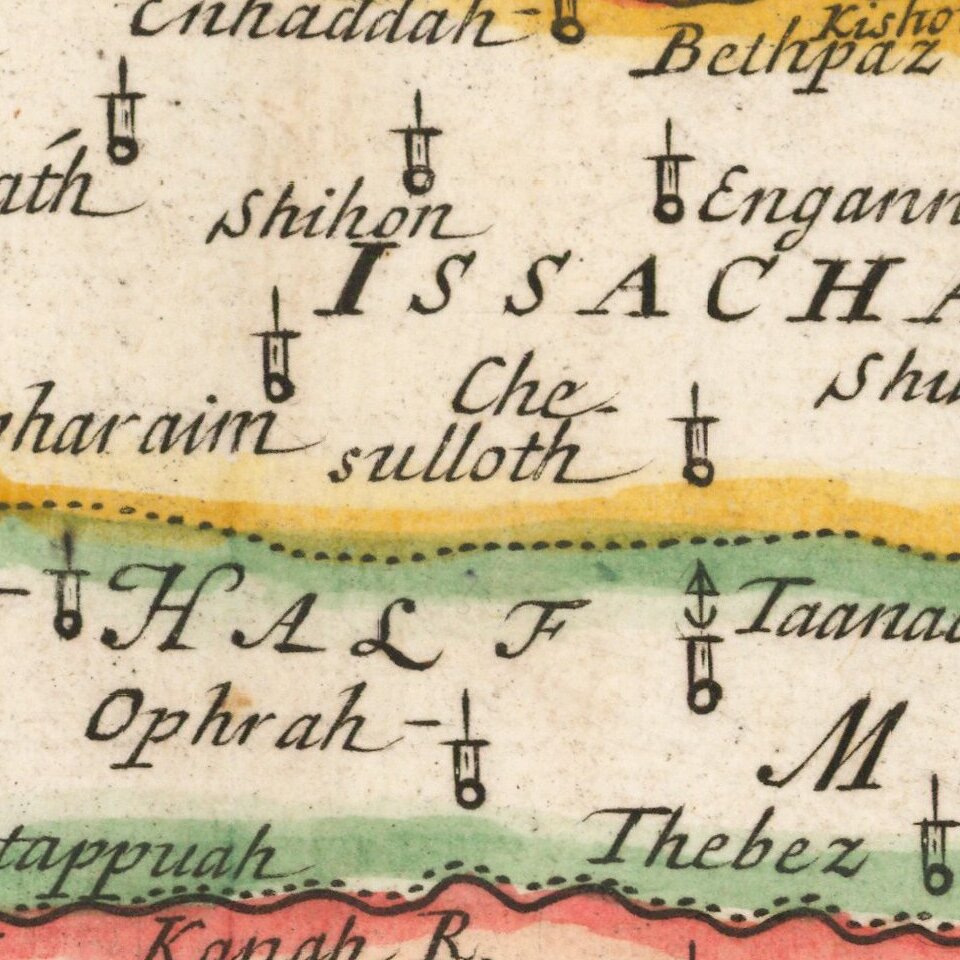 Decorative map of the Holy Land, colored by Tribes.