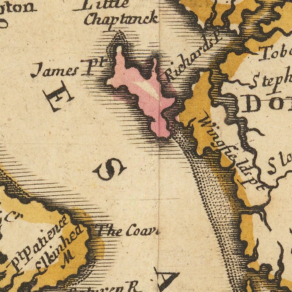 Browne's map is the last major derivative of the Augustine Hermann Map of 1673, reoriented with north at the top and reduced to a single folio sheet. Philadelphia appears on the map. The Northern and Eastern boundaries of Maryland are shown. The boundary for Delaware (then part of Pennsylvania) is shown favoring the claims of Lord Baltimore, rather than the Cape Henlopen boundary, which was finally ratified by the British Courts when the dispute was settled in the 1730's and finally mapped by Mason & Dixon several decades later.