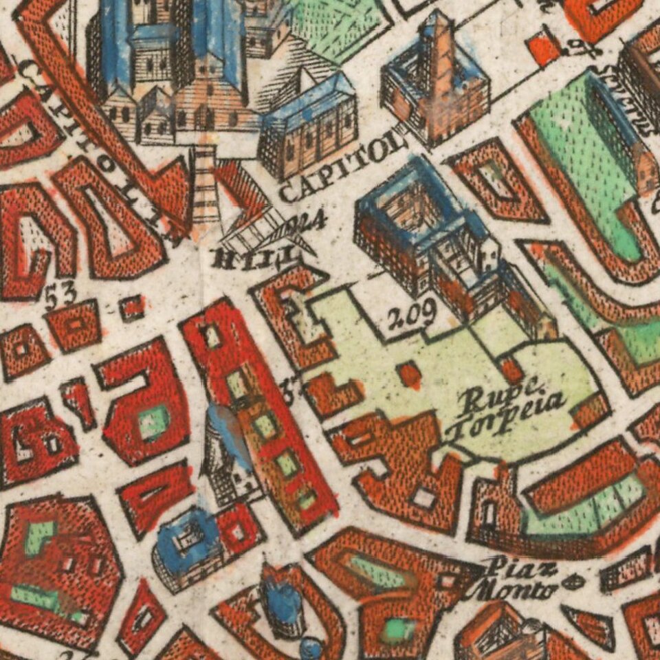 Finely colored and highly detailed map of Rome.