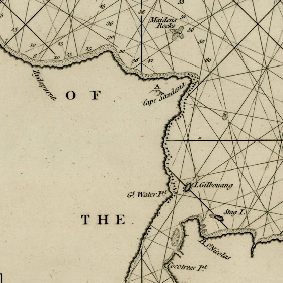 Scarce sea chart of the Straits of Bali and part of Madura, with a large inset of the Bay of Ballambouang, showing the narrow channel between the Isand of Bali and East Java.