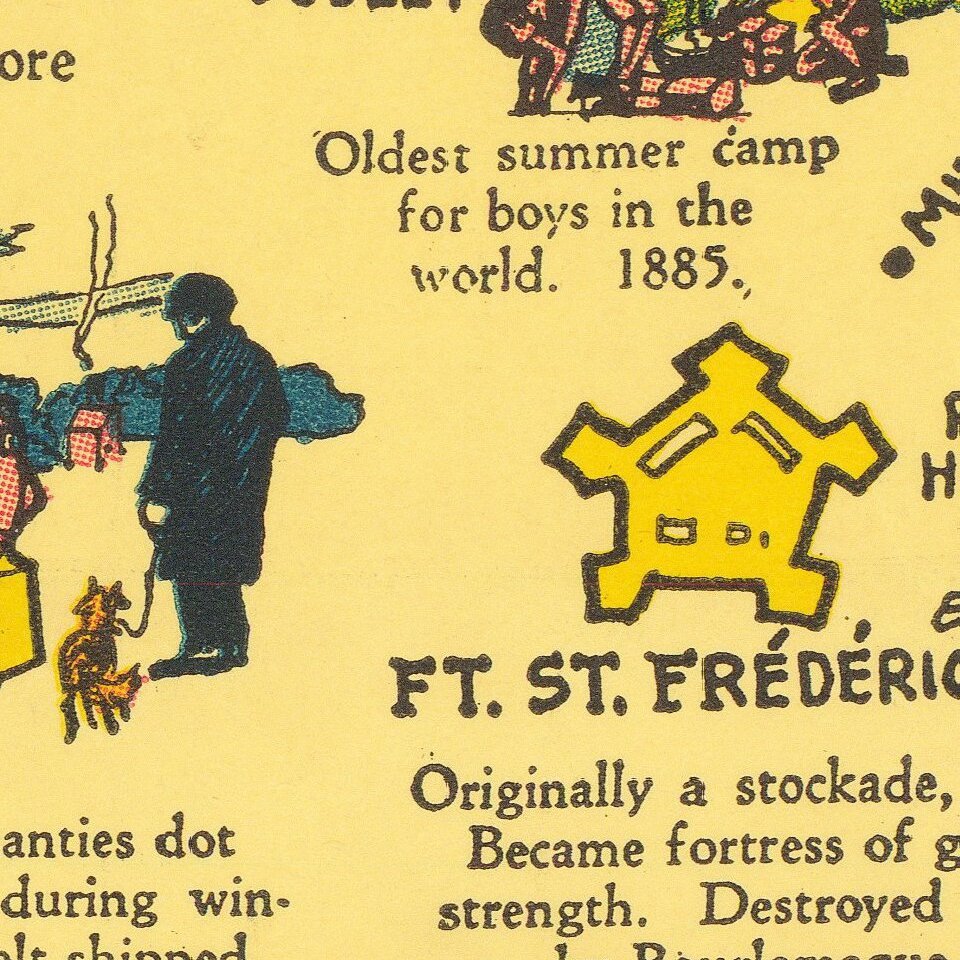 Of course, many other aspects of the region are pictured in the map. The map informs about the history of zoo animals in the region, vice-presidents, mining, and much, much more. In all, this is a fascinating and attractive pictorial map of an idyllic and historical part of New England.