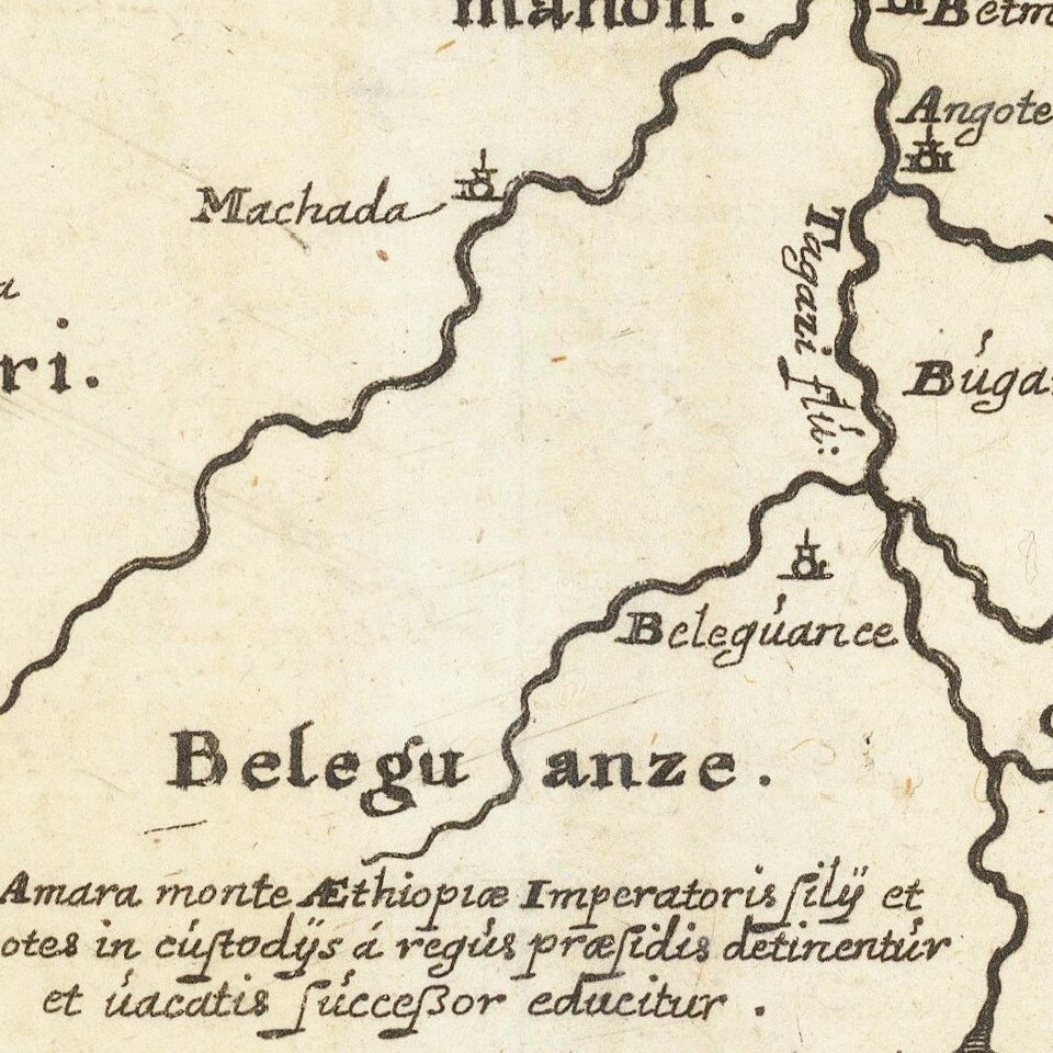Striking map of the Kingdom of Prester John, reduced from Blaeu's map.