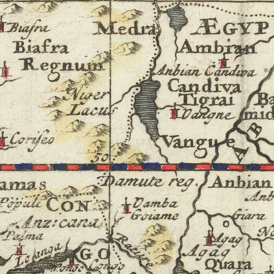 Rare Luneberg edition of this 17th Century map of Africa, which appeared in a German edition of Cluverius' Introductionis in Universam Geographicam.
