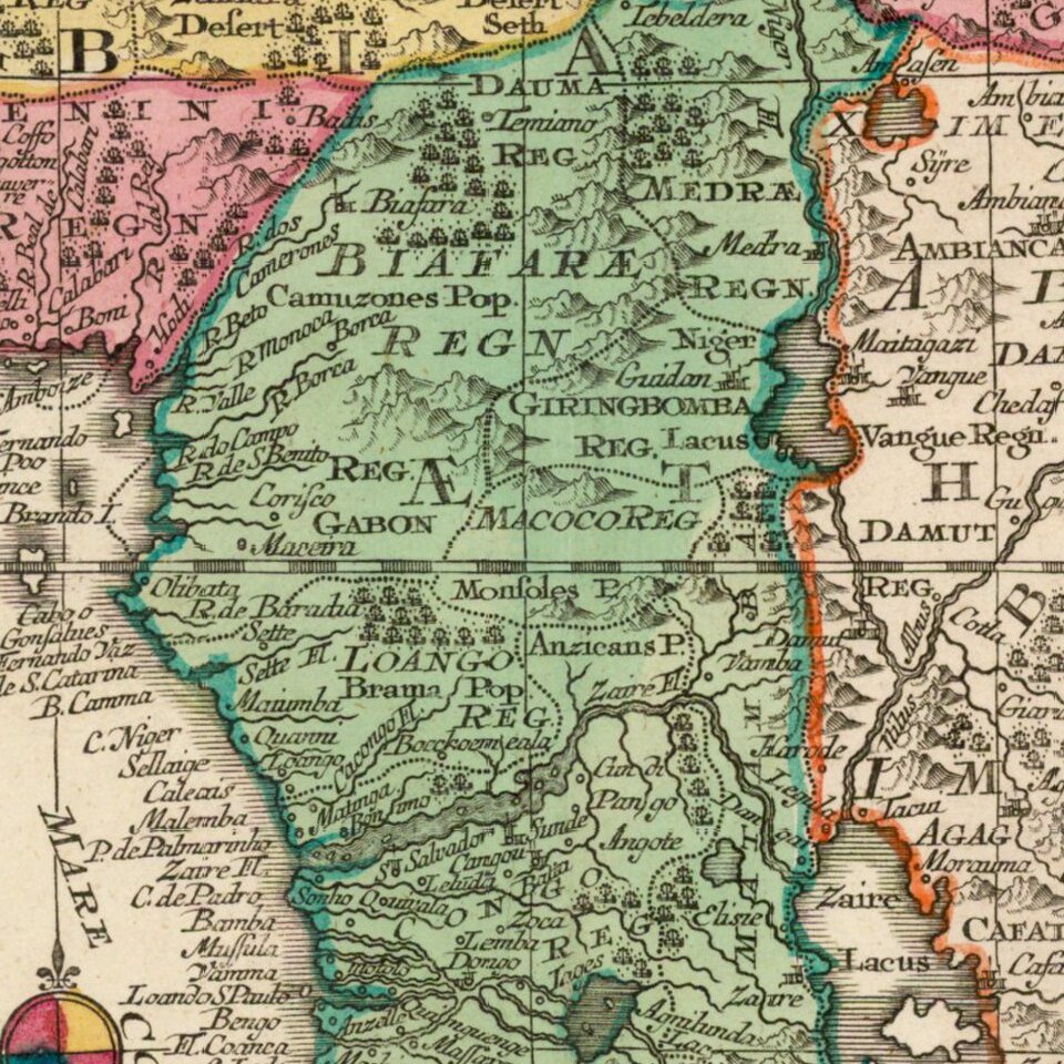Fine dark impression of the rare Johann Michael Probst edition of Matthaus Seutter's map of Africa.