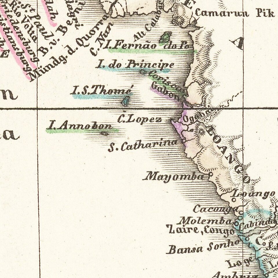 The map reflects the explorations by Europeans in the interior parts of the continent, but still reflects the relatively sparse geographical information known about most of the interior parts.