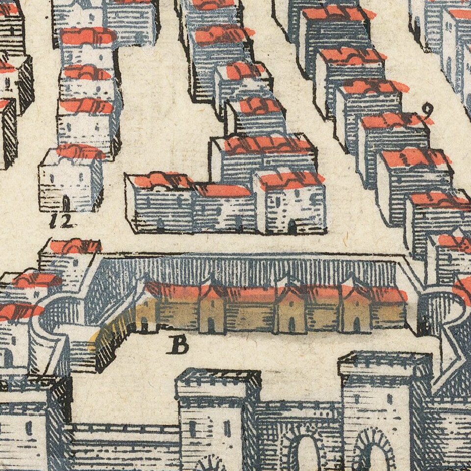 Georg Braun (1541-1622) was born and died in Cologne. His primary vocation was as Catholic cleric; he spent thirty-seven years as canon and dean at the church St. Maria ad Gradus, in Cologne. Braun was the chief editor of the Civitates orbis terrarum, the greatest book of town views ever published. His job entailed hiring artists, acquiring source material for the maps and views, and writing the text. In this role, he was assisted by Abraham Ortelius. Braun lived into his 80s, and he was the only member of the original team to witness the publication of the sixth volume in 1617.