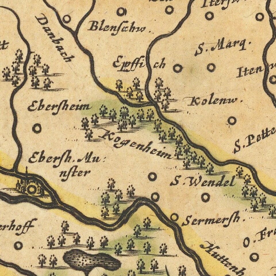 Large antique engraved map of the Alsace Region, focusing on the cities of Basel and Strasbourg.