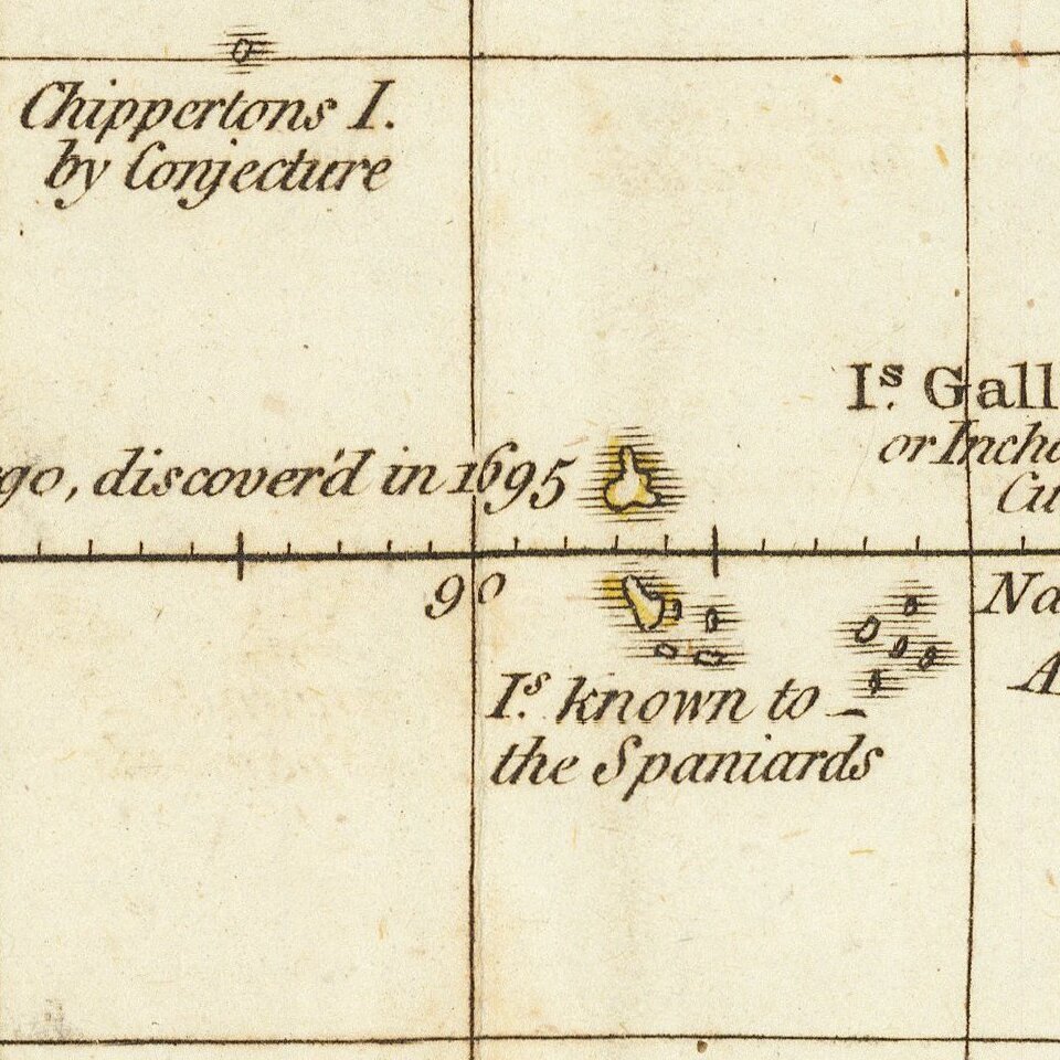 The map retains the location of Mendana's Land west of Hawaii, a reference to a pre-Cook Spanish expedition that may have touched on Hawaii in the 16th Century, but for which the details remain debated among scholars.