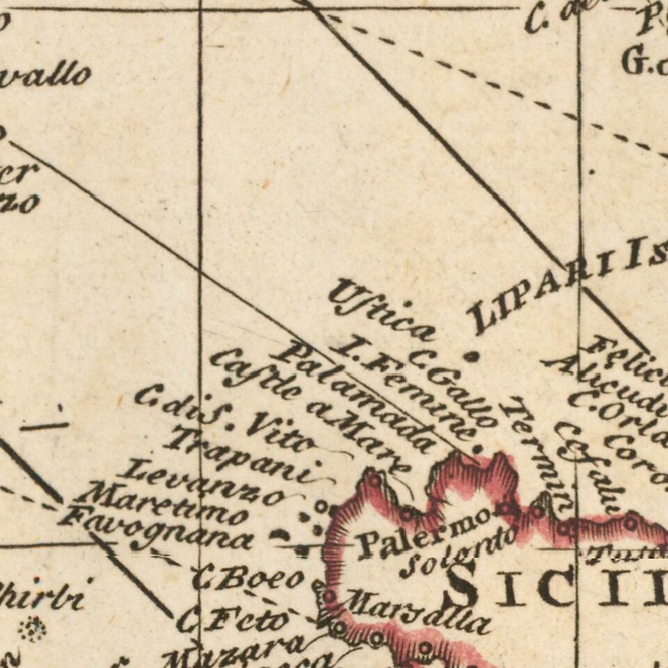 Hundreds of placenames and fine detail throughout. Decorative cartouche and 2 compass roses. Extends from Cyprus and the Sea of Azoff to beyond the Straits of Gibralter.