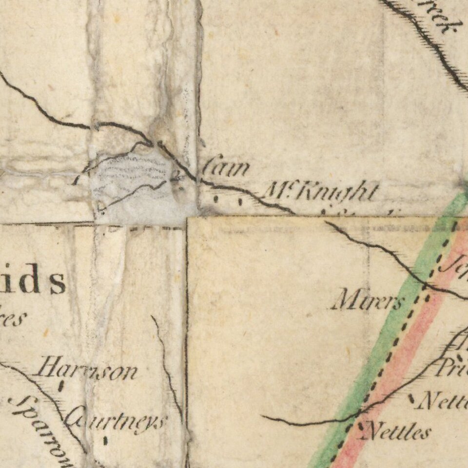 Mapmaker and civil engineer, Henry Mouzon, Jr. (1741-1807) was the grandson of a Huguenot immigrant to South Carolina who held land grants in Berkeley County. Henry, Jr. was born in Craven (now Williamsburg) County, South Carolina. After his father's death in 1749, eight-year-old Henry Jr. was sent to France for his education, where it is presumed that he learned mapmaking skills. He received his first important public commission in 1771, when he and Ephraim Mitchell (subsequently the surveyor general of South Carolina) were appointed by Governor Lord Charles Greville Montague to survey the boundaries of the civil districts of South Carolina.The first notice of Mouzon's work was announced in an advertisement in THE SOUTH CAROLINA AND AMERICAN GENERAL ADVERTISER in May 1774, which announced his intention to publish a map of South Carolina only in January 1775. After expanding the scope to both North and South Carolina, Mouzon's map was first published by Sayer & Bennett in 1775.