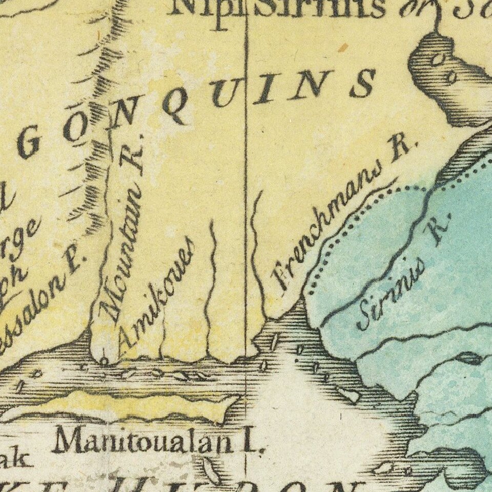 The map extends north to James Bay, west to the Mississippi River and south to Philadelphia and Pittsburg.