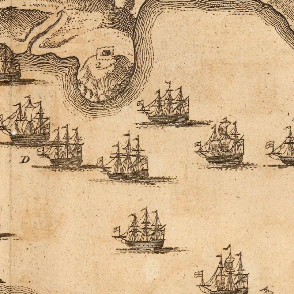 Fine contemporary plan of the Battle of Vigo Bay, in the War of the Spanish Succession, from Rapin & Tindall's History of England.