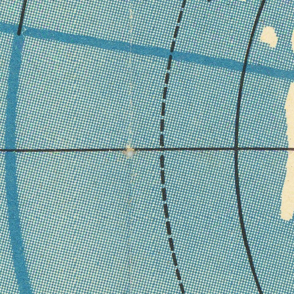 The majority of the image is taken up by a map of the continent of Antarctica. Covered in snow and ice, the Ross and Weddell Seas are marked. The Magnetic South Pole is also indicated, as is the settlement of Little America, which is located in a section controlled by New Zealand. This station was first established by the American explorer Robert Byrd on his first Antarctic expedition on 1928-1930. Byrd led the first successful flight over the South Pole on November 29, 1929.