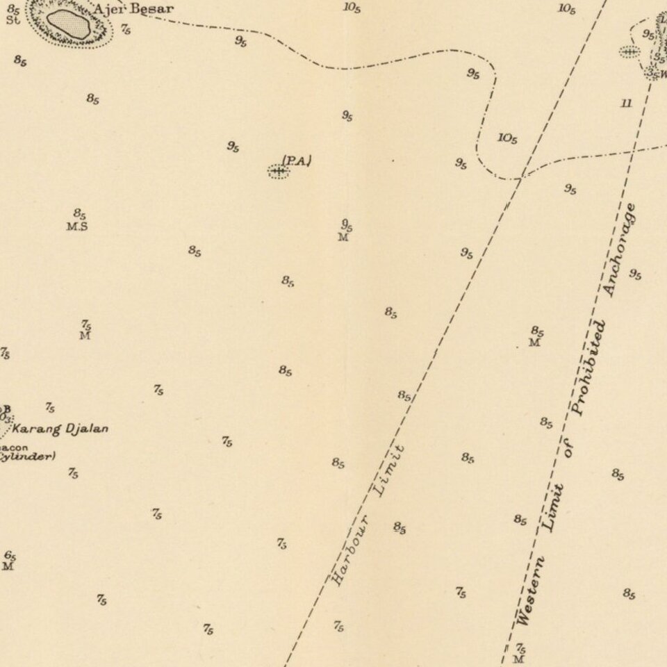 Fine large format map of the approaches to the Harbor of Jakarta, published by the British Admiralty, based on an Indonesian Chart published in 1956.