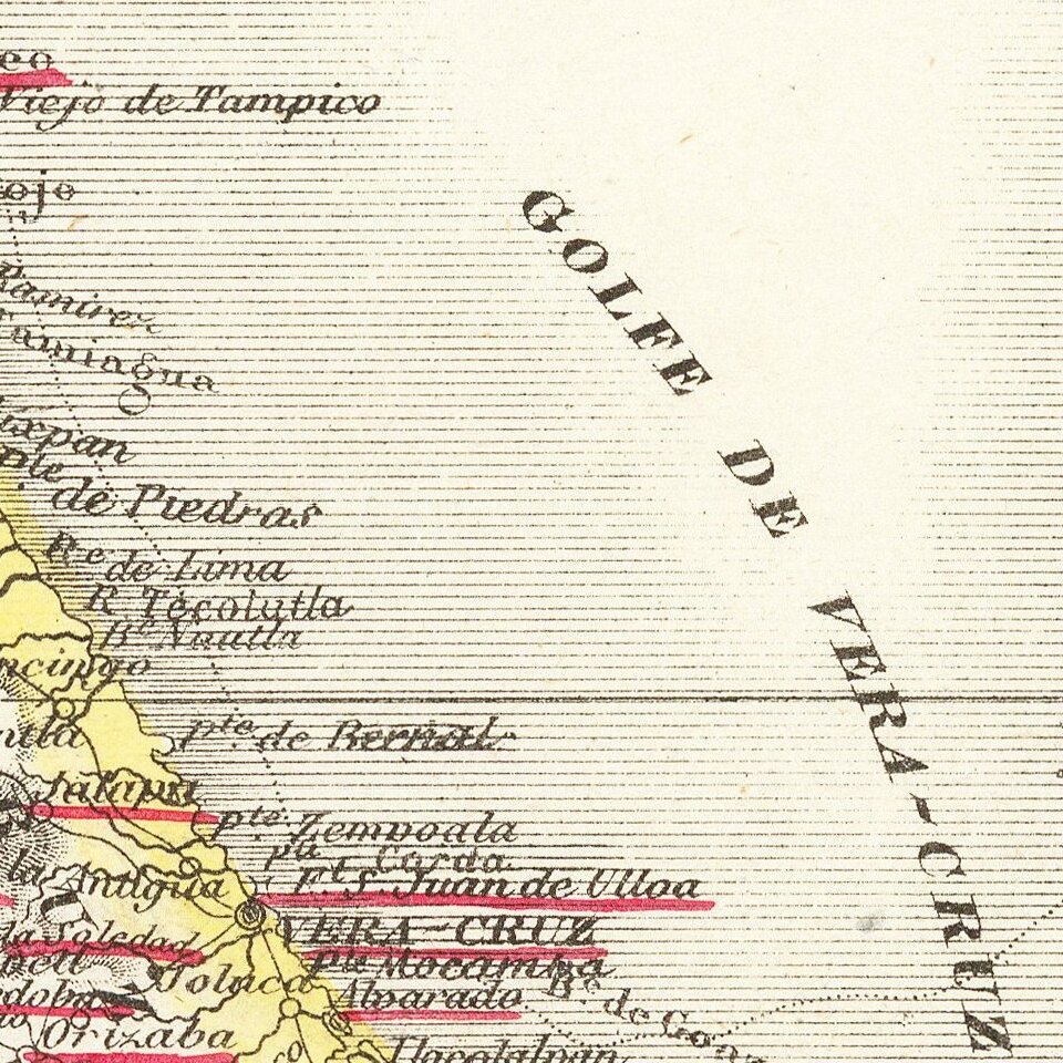 The map provides nice detail in Texas and along the Rio Grande, with emphasis on the roads and towns. The French Colony In Texas (Col. Francaise) is shown, along with a number of forts.