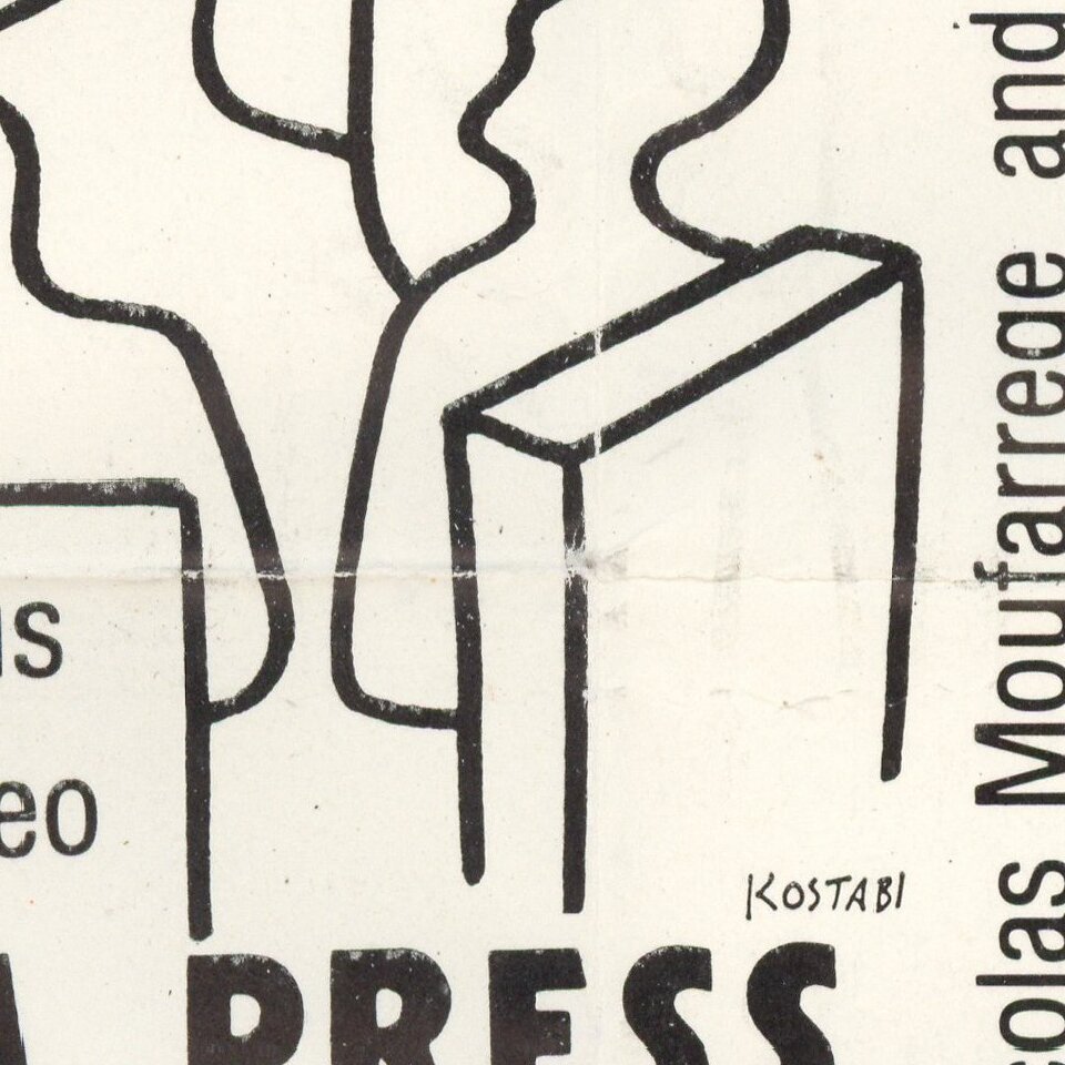 Promotional poster for Roland Hagenberg’s book East Village ’85. Text by Carlo McCormick, in collaboration with Walter Robinson and Paul Benney. Drawings by Mark Kostabi.