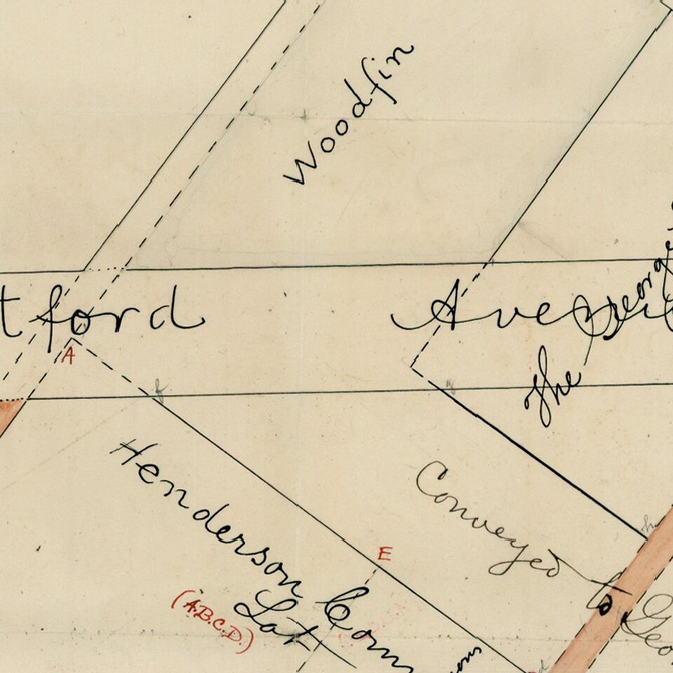 Early cadastral map of part Asheville, North Carolina, just south of the University of North Carolina, Asheville, identifying the land owners in a section of town including Pearson Drive, Montford Avenue, Soco Street and Cullowhee Street, just southwest of Montford Park.