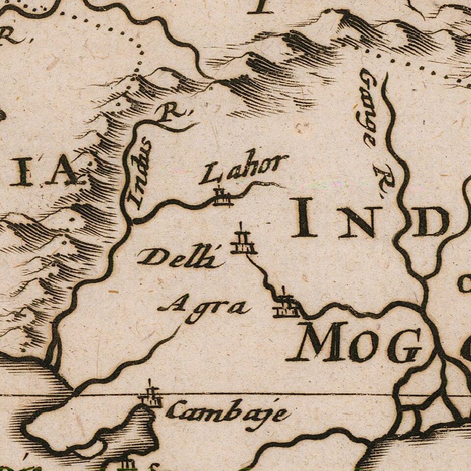 The map appeared in Moore's A New Geography. Many of the plates in the work were engraved by Herman Moll, who had moved to London in 1678 and had not yet begun publishing under his own name. These are among the earliest known maps engraved by Moll. Burden credits Moll's first map as being his work for William Berry, also in 1681.