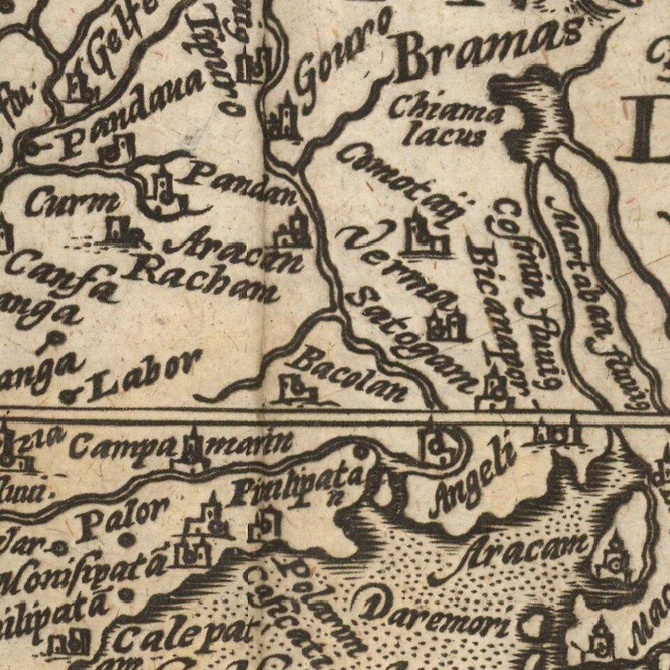 The main source for this map is De Jode's map of Asia. The map appeared in the De Jode atlas, Speculum Orbis Terrae, in 1593. Quad (1557-1613), a map publisher based in Cologne, was trained in the Netherlands by Johannes van Doetecum, who also worked with the De Jodes. Quad used many De Jode maps as a base to which he added additional information and decorations.