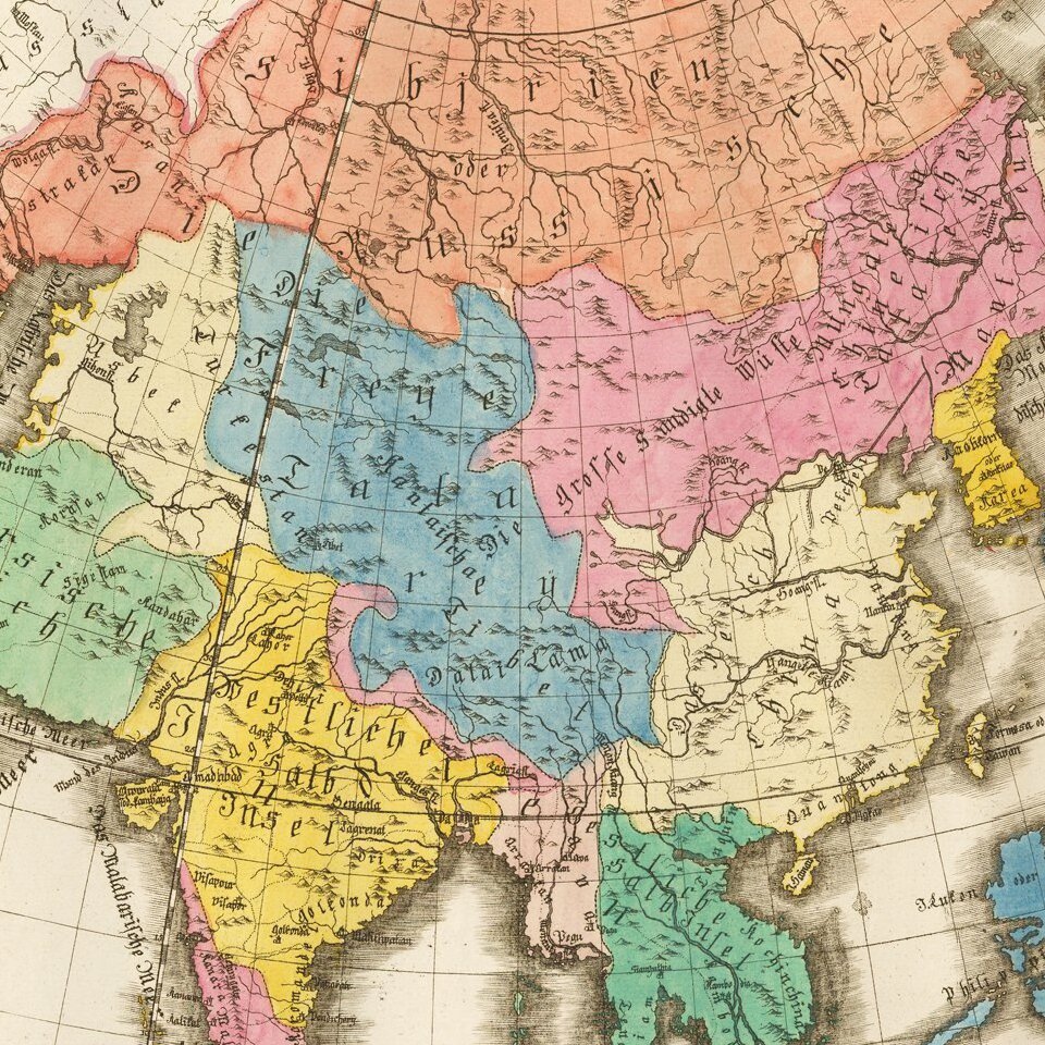 Extremely rare map of Asia, published in Mainz by W.C. Rucker.