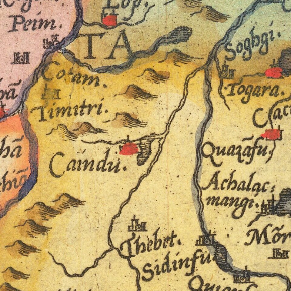 Gerard De Jode (1509-1591) was a pre-eminent mapmaker in the late seventeenth century, a time when the Dutch dominated the map trade. He was known for his many maps, some of which featured in Speculum Orbis Terrae (first edition Antwerp: 1578). Although never as successful as Ortelius’ Theatrum, the Speculum did get republished in a second edition in 1593, two years after De Jode’s death, by Arnold Coninx, and included this map. After his death, Gerard’s son, Cornelis (1568-1600), and his wife, Paschina, ran the shop. Unfortunately, Cornelis died young in 1600, aged only 32, and the stock and plates were sold to the publisher Joan Baptista Vrients.