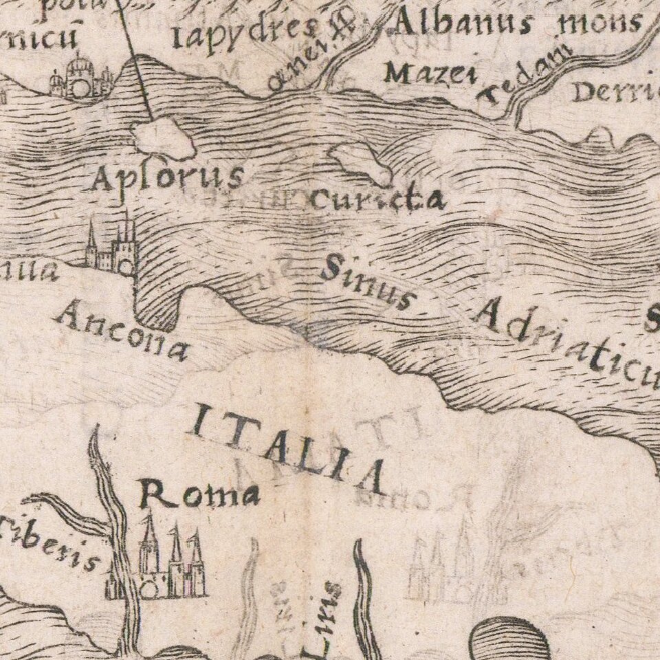 His contemporaries also recognized his skill, as he was named cosmographer to the Republic of Venice, was a member of the Accademia Veneziana, and was a major source for other geographers and mapmakers including Camocio, Bertelli, Cock, Luchini, and Ortelius. He even had his own distinct style of copper engraving that made him a pioneer in his day and makes his works iconic today.