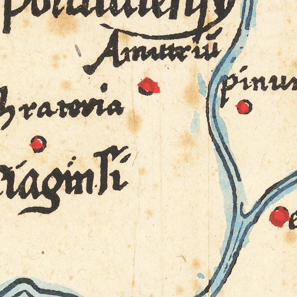 After Grüninger's death in ca. 1531, the business was continued by his son Christoph, who seems to have sold the materials for the Ptolemy to two Lyon publishers, the brothers Melchior and Gaspar Trechsel, who published a joint edition in 1535, before Gaspar Trechsel published an edition in his own right in 1541.