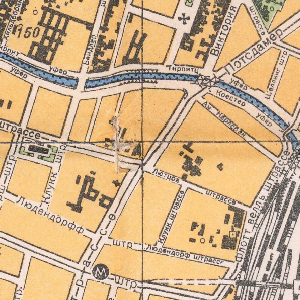 The Soviets also produced a four-sheet 1:15,000 map of Berlin in 1944-45. That original 4-sheet Berlin map was ordered on September 15, 1943, by Stavka (Headquarters of the Supreme Commander in the USSR). Prior to that order, there was no Russian up-to-date Berlin plan for military use, and there would have been no reason for optimism that such a map would ever be needed before 1943.