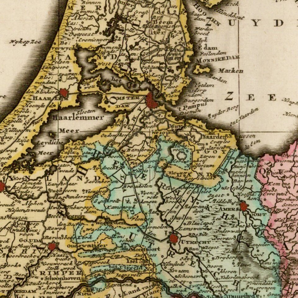Scarce and highly detailed map of the Low Countries, published by Valk.