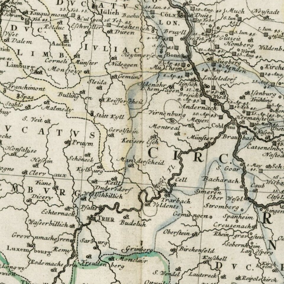 Homann Heirs was a German publishing firm that enjoyed a major place in the European map market throughout the eighteenth century. Founded in 1702 by Johann Baptist Homann, the business passed to his son, Christoph, upon Johann’s death in 1724. Christoph died in 1730, aged only 27, and the firm was inherited by subsequent Homann heirs. This altered the name of the company, which was known as Homann Erben, or Homann heirs. The firm continued in business until 1848.