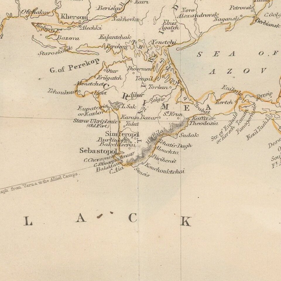 Scarce decorative map of the Black Sea, pubilshed by Rapkin.