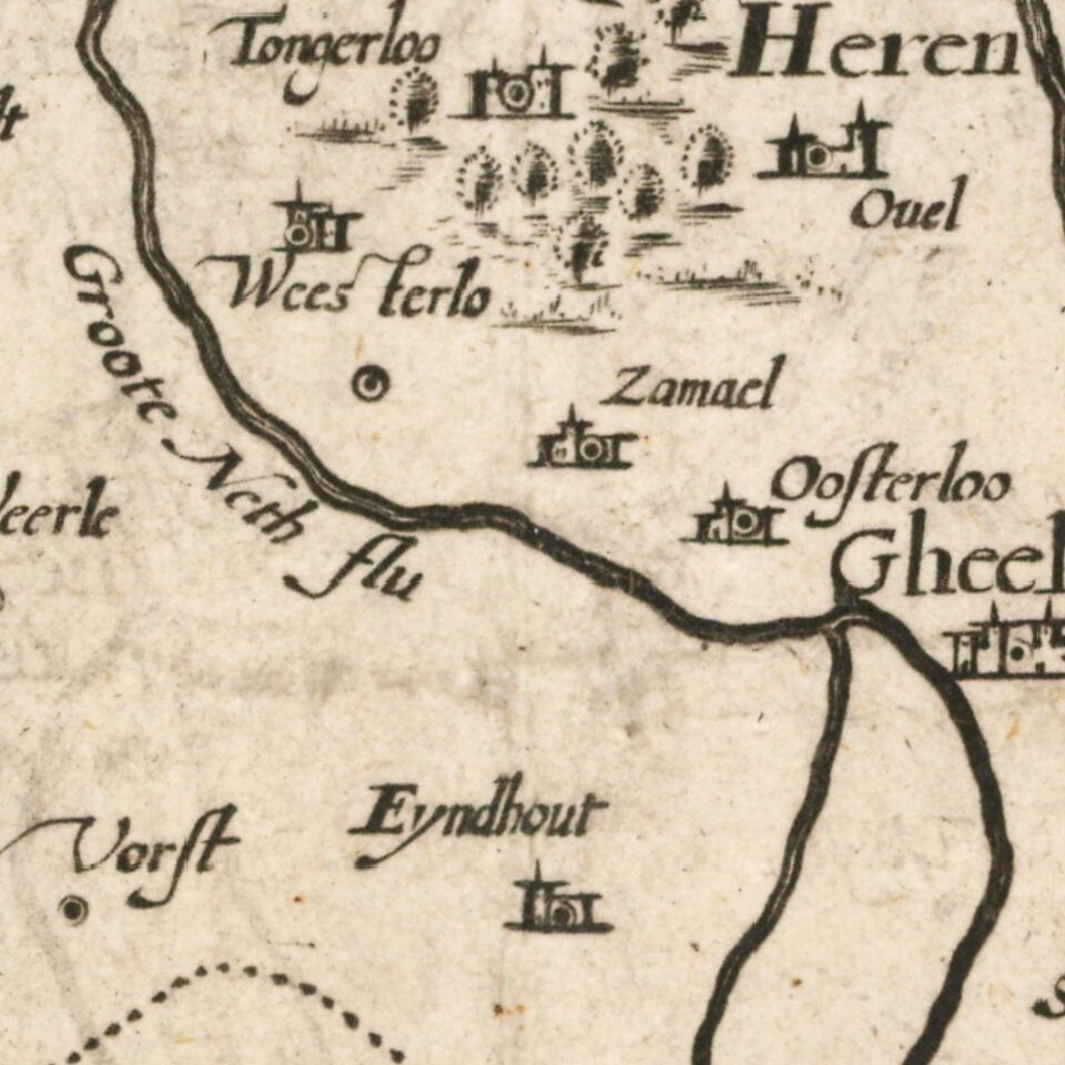 The map is oriented with west at the top and includes City Views of Leuven, Brussels, Antwerp, s'Hertogenbosch, Mechelen, Breda, Helmond, Lier, Bergen op Zoom and Tienen.