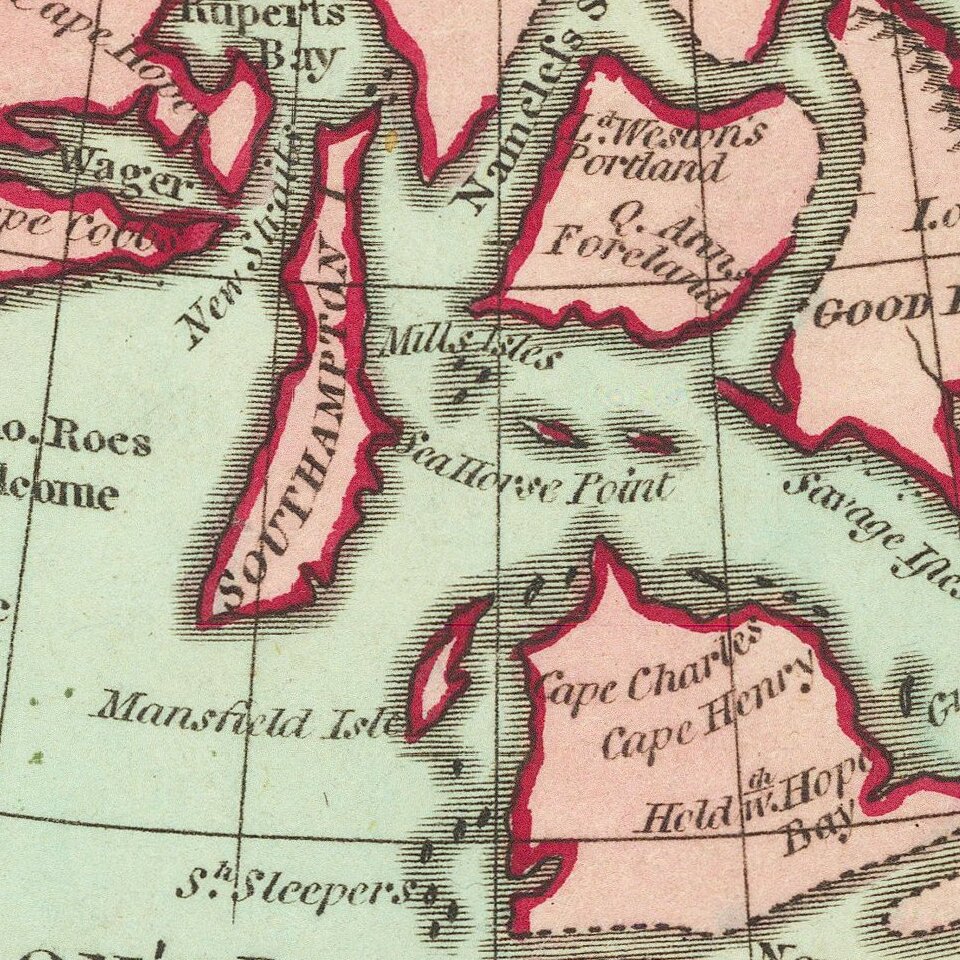 On the map, the source of the Mississippi River is shown as a Lake Bourbon. Tributaries of the river very nearly reach other rivers that flow into Hudson's Bay. An uncertainly drawn New Sea cuts through Labrador, it is unclear what this is meant to represent. Baffin's Bay closed, and "Prince Williams Land" extends far to the north. The Coppermine River, as mapped by Samuel Hearne in 1771, flows into "The Sea."