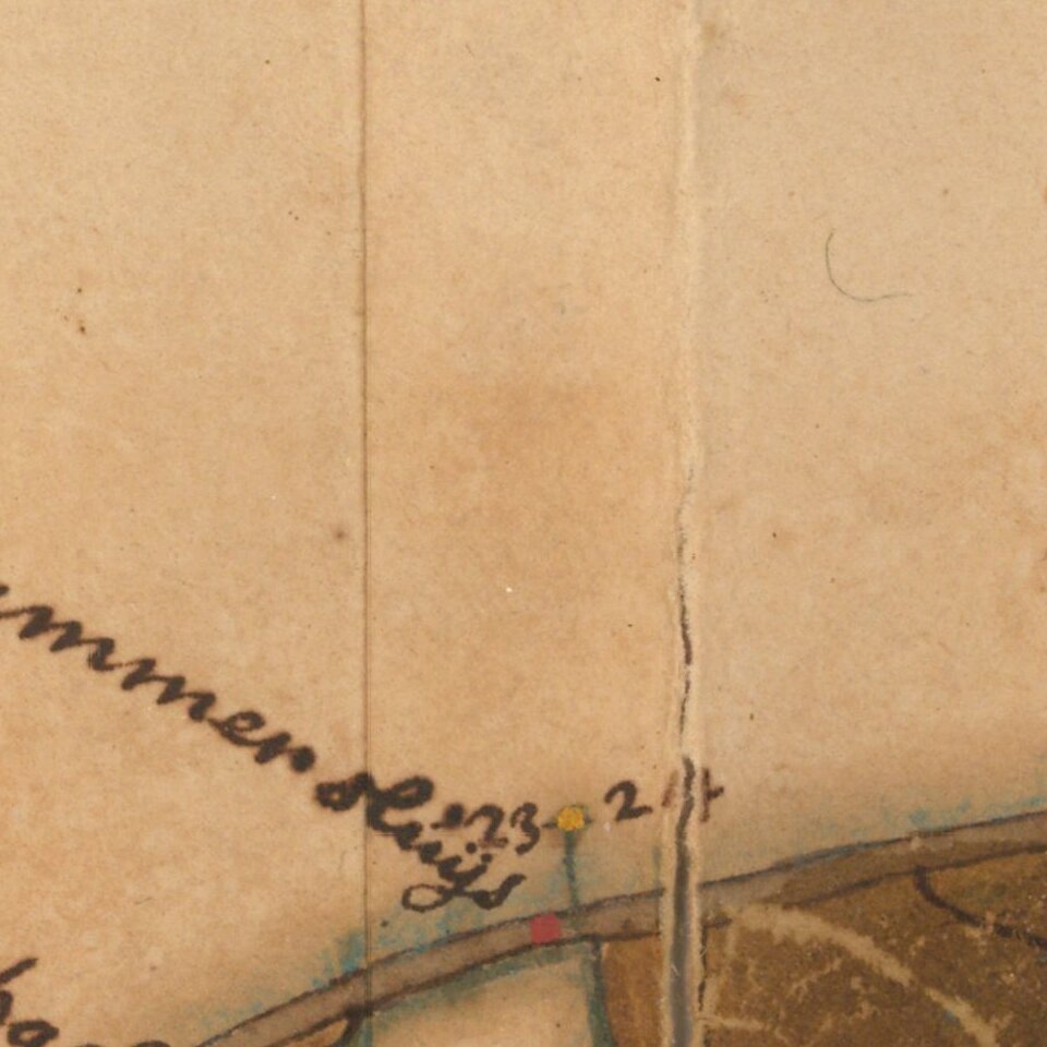 Finely executed gold heightened manuscript map of the Nieuwvaart Canal in Amsterdam, drawn by Amsterdam's Inspector General of Dikes and Canals, Nicolaas van der Heyden in 1676.