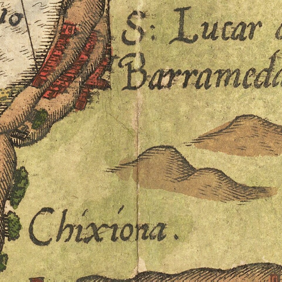 Striking full color example of Wagenhaer's map of the southwestern coast of Spain, including the Bay of Cadiz.