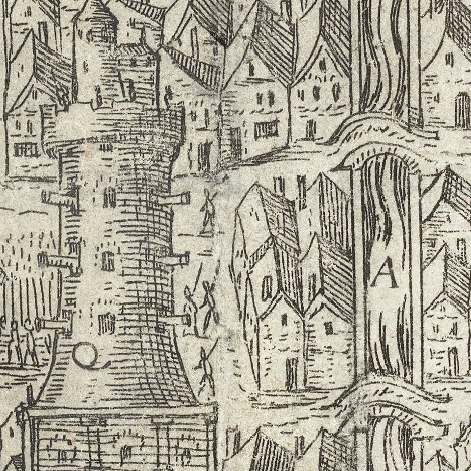 Fourth and final state of this are map of the Siege of Calais, illustrating the taking of Calais from the English (then ruled by Queen Mary, whose quote is noted above), one of the final acts in the French re-taking of the last of the English held portions of France during the Hundred Years War.