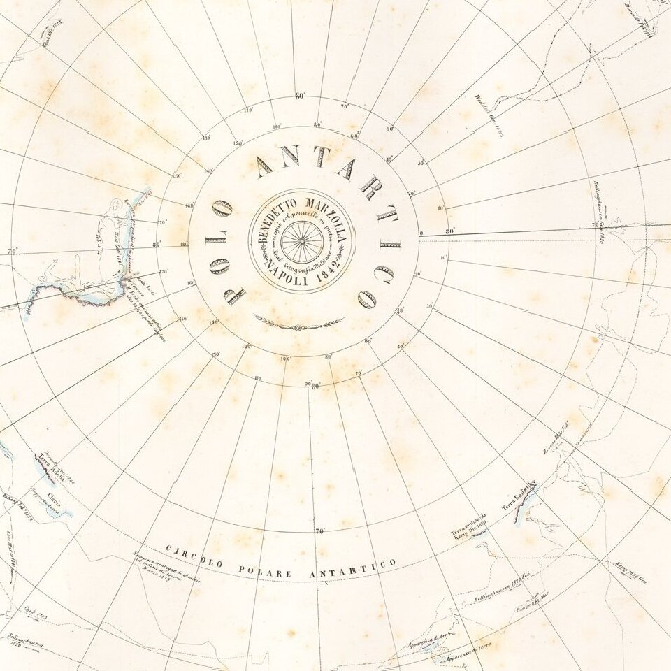 Rare map of the Antarctic regions, by Neapolitan mapmaker, Benedetto Marzolla.