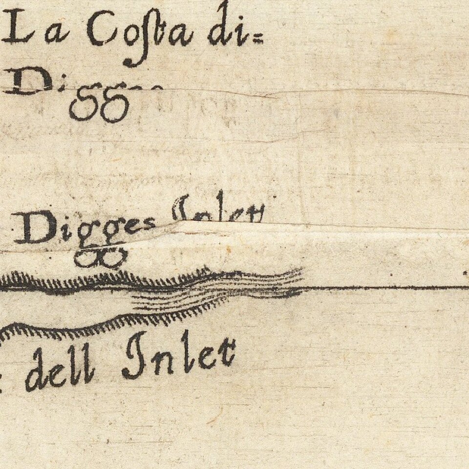 The outline of the chart appears to be partly derived from Hessel Gerritsz, 1612, although the nomenclature appears to be largely the work of Dudley. Many of the placenames are descriptive of a particular coastal feature. It has been postulated by earlier authorities that Dudley had access to some original Henry Hudson material, and that his is derived from it. Dudley was personally acquainted with many of England's explorers, Thomas Cavendish was even his brother-in-law. . . . His manuscript atlas provides some fascinating material for further research. The charts of the whole region bear many alterations.