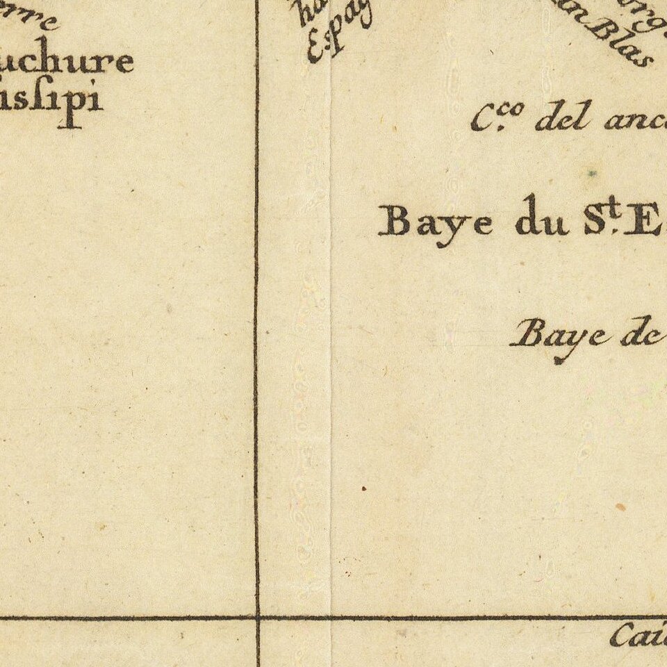 Chatelain bases his map on Guillaume De L'Isle's monumental Carte du Mexique . . . , first issued in 1703, along with several other of De L'Isle's works. De L'Isle's map is drawn from the reports brought back to France from the survivors of the LaSalle expedition as well as from information from the explorations of Bienville and d'Iberville. De L'Isle also leveraged his close relationship with the king of France to access the best available information regarding the New World. From this, he was able to use sources from French missionaries and Spanish manuscript maps. These manuscripts were oftentimes copied by the French missionaries once they had gained the trust of the Spanish.