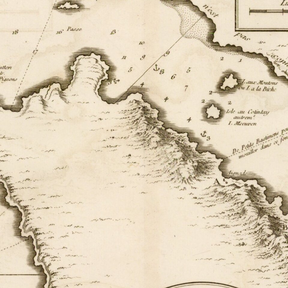 Jacques-Nicolas Bellin (1703-1772) was among the most important mapmakers of the eighteenth century. In 1721, at age 18, he was appointed hydrographer (chief cartographer) to the French Navy. In August 1741, he became the first Ingénieur de la Marine of the Depot des cartes et plans de la Marine (the French Hydrographic Office) and was named Official Hydrographer of the French King.