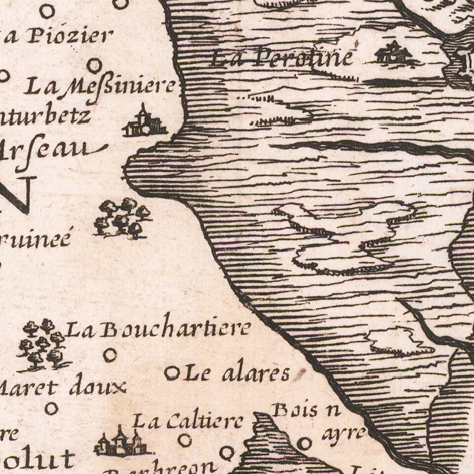 At the time of the creation of this map, the region was a stronghold of the Protestant Huguenots, which was then under siege by the French Catholic monarchy under the control of the infamous Cardinal Richelieu.