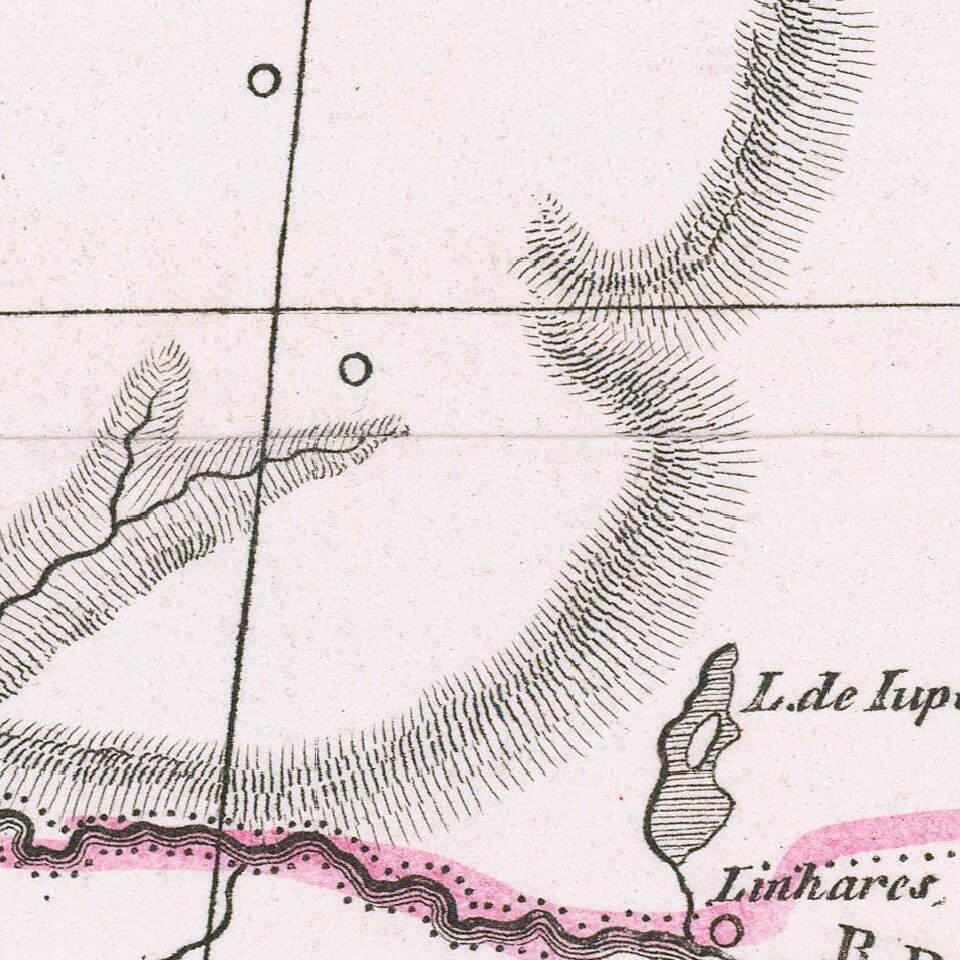 Fine map of a portion of Brazil, prepared to illustrate Prince Maximilian of Wied's expedition to Brazil in 1815-1817.