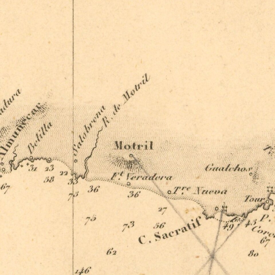 Rare separately published sea chart of the Strait of Gibraltar coast of Southern Spain and the corresponding coast of North Africa, published by Robique.