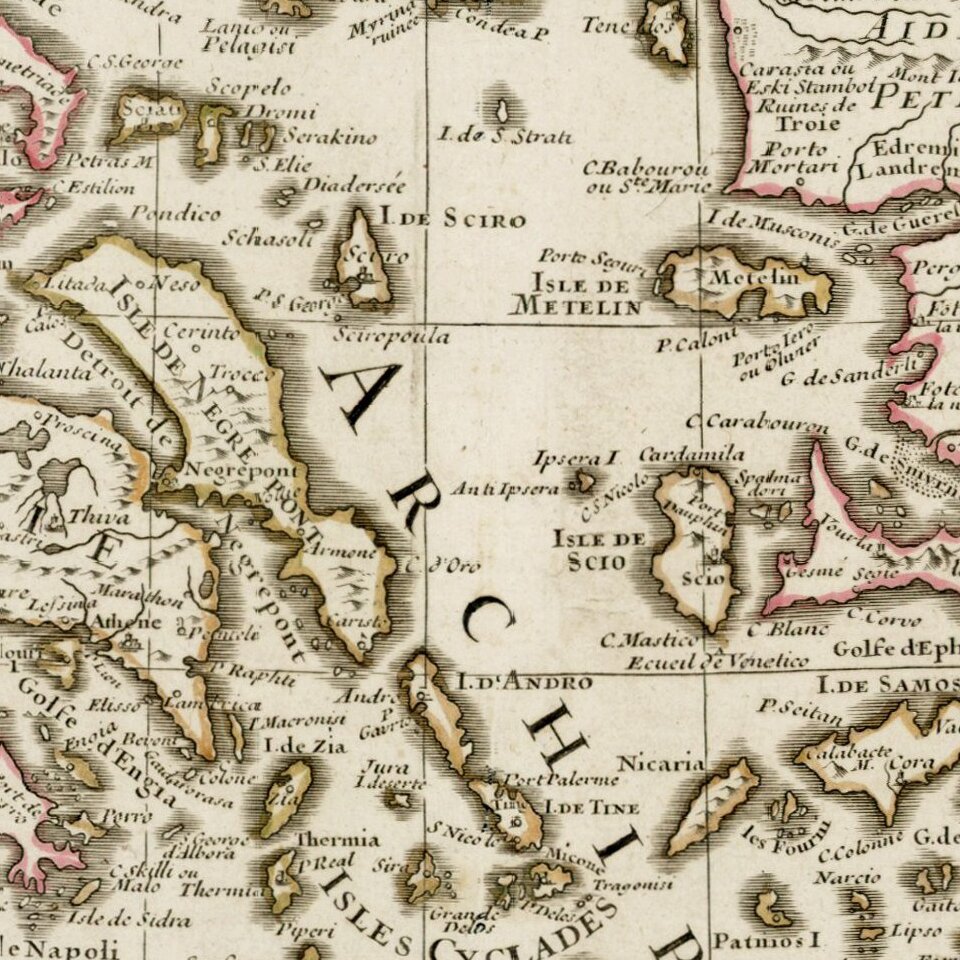 Detailed map of Greece, Turkey and Cyprus, originally based upon the work of De L'Isle and Buache.