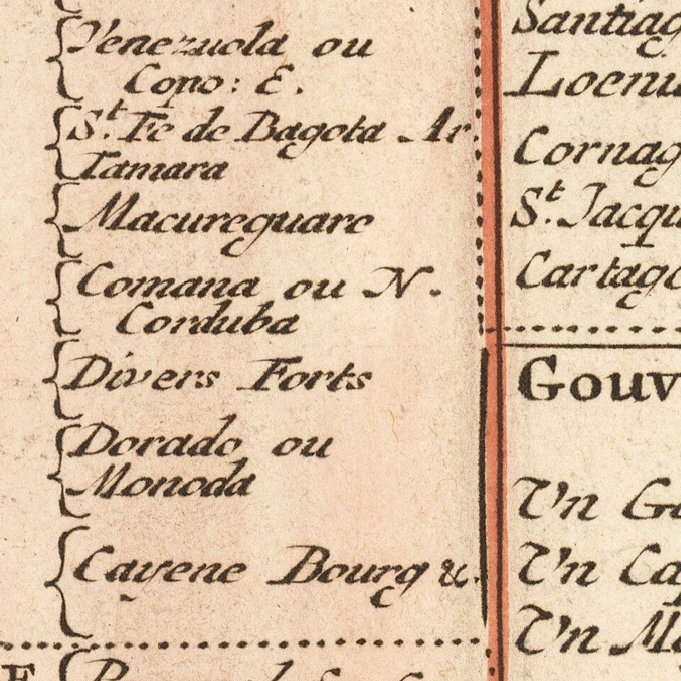 Includes 4 printed views of the counsels of the West Indies, North America, South America and Terre Ferme.