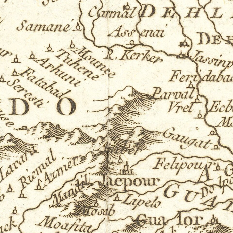 Finely engraved map of Afghanistan and Pakistan, from Jacques Nicolas Bellin's Le Petit Atlas Maritime Recueti de Cartes et Plans des Quatre Parlies du Monde en Cinq Volumes, first published in Paris in 1764.