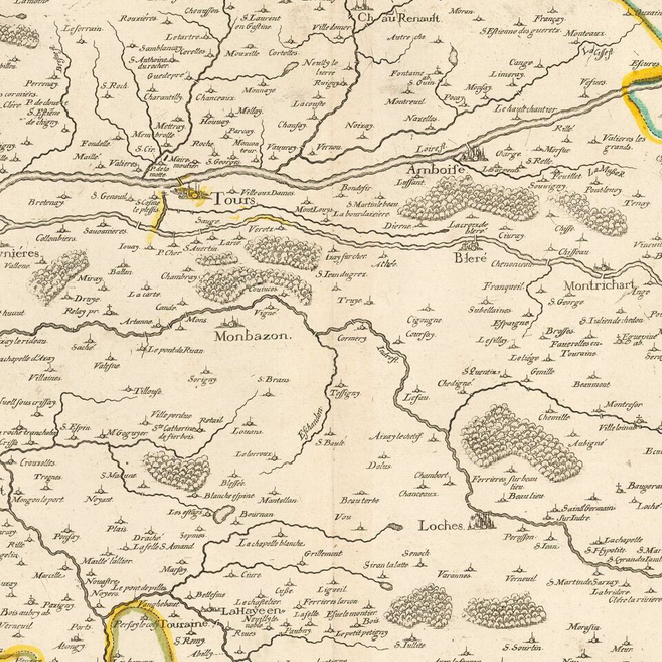 Rare map of the Province of Touraine, published in Paris by Tassin.